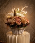 Összetétel: rusztikus kaspó, prémium minőségű mű rózsák, dekoratív virágok, díszítő zöldek, termés kiegészítők.